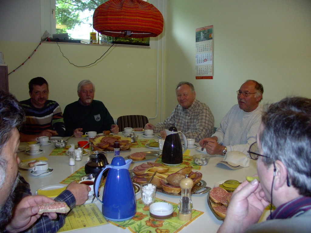 | Zum Frühstück hat der Vorsitzende Klaus Schmidt geladen. |