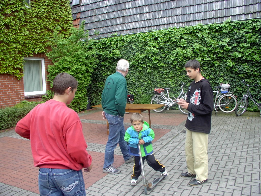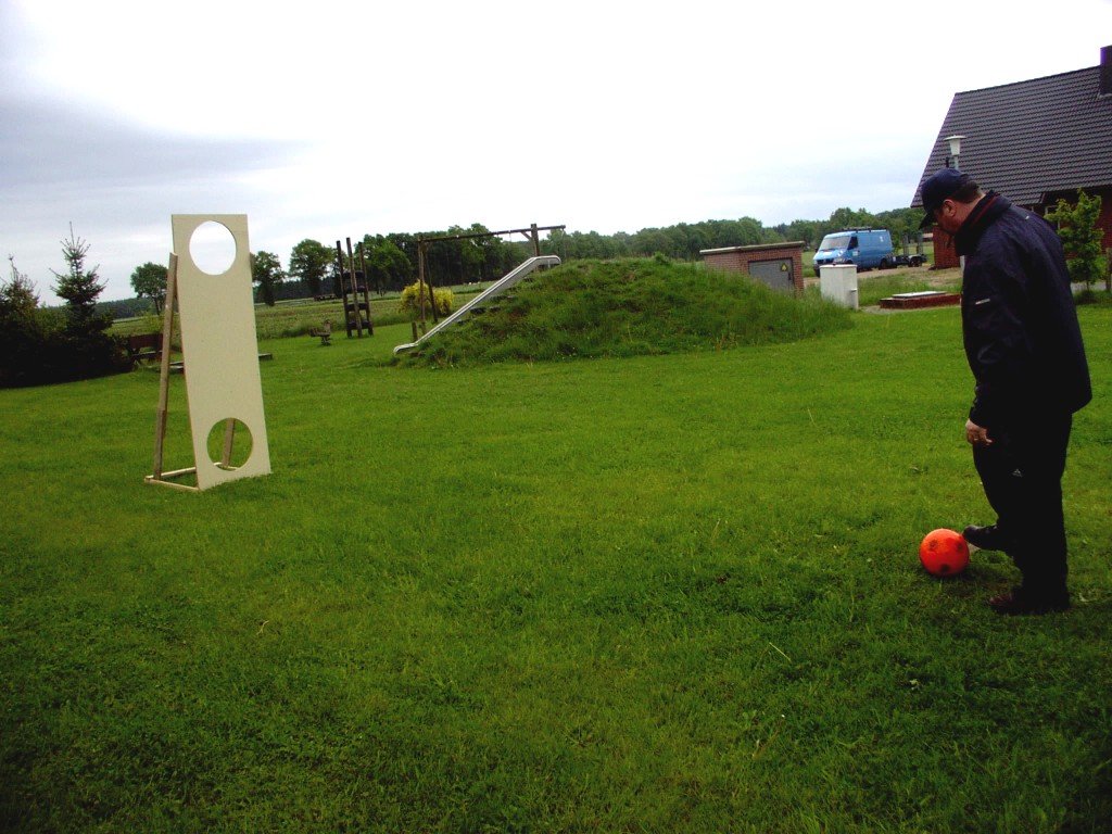 | Und da ja Rad fahren alleine keinen Spaß macht, wird mal Rast gemacht, um Stiefel weit zu werfen. |