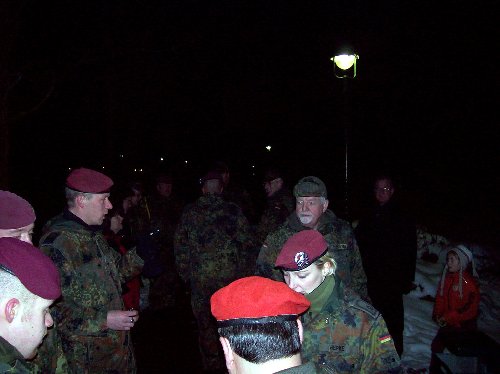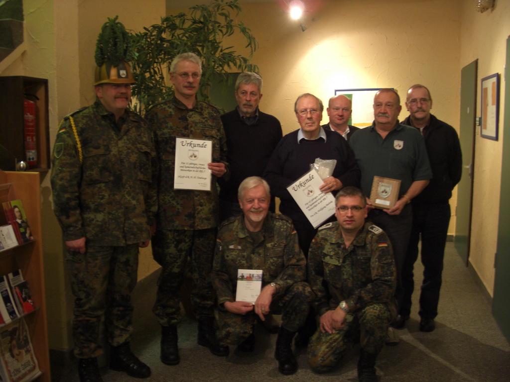 | Alle Wanderer, unter ihnen auch Vertreter der Patenkompanie der Stadt Bremervörde, trafen sich erst einmal im RK-Heim. Von dort ging es um den See zum CJD. |