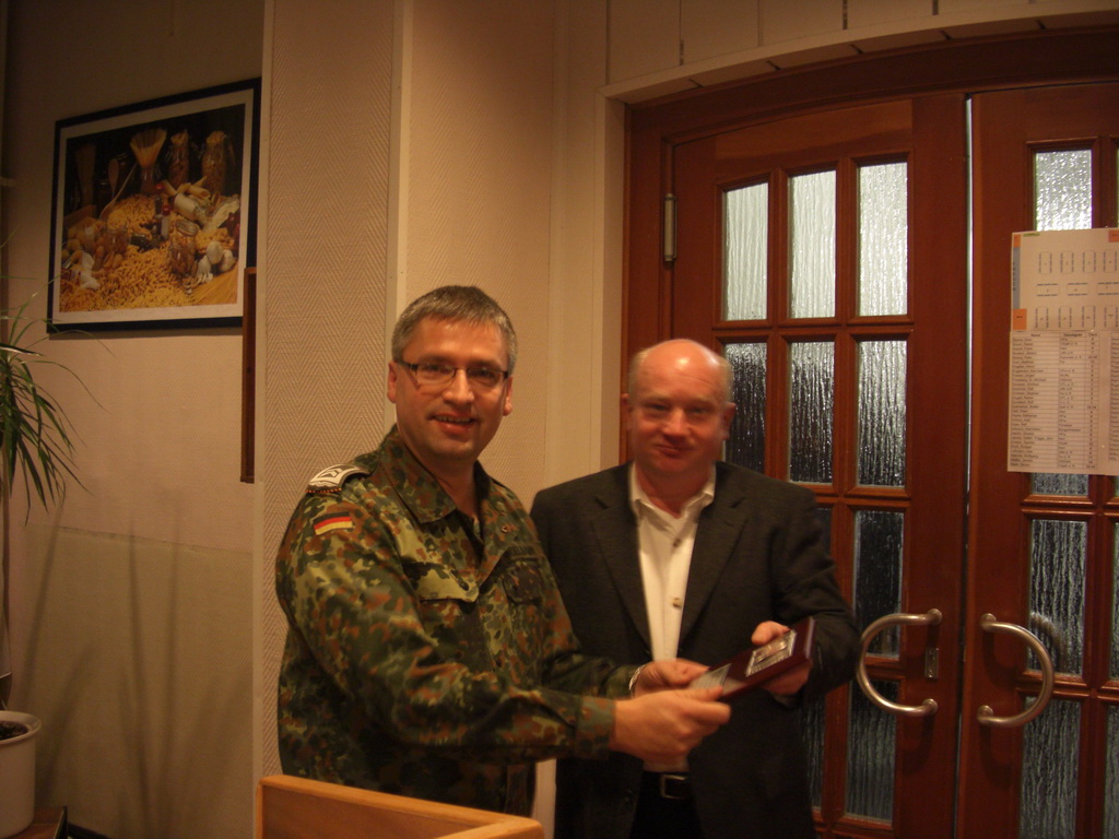 Kuhstedt, Detlef Jacobs für die 40-jährige kameradschaftliche Zusammenarbeit und überreicht eine Plakette |