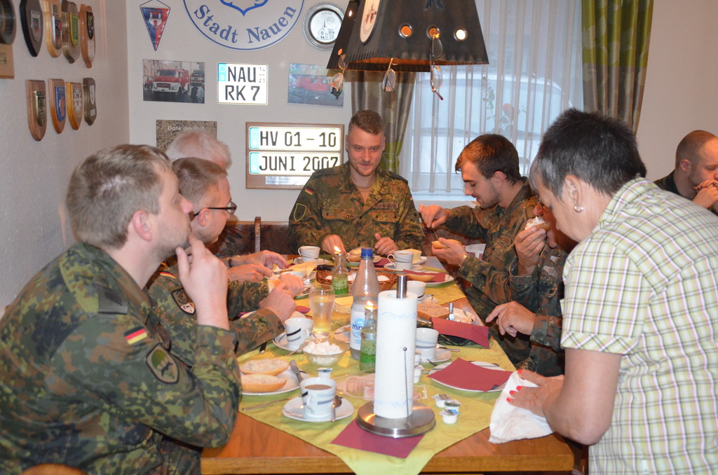 | Mit Freude kommen die Kameraden im RK-Heim an, |