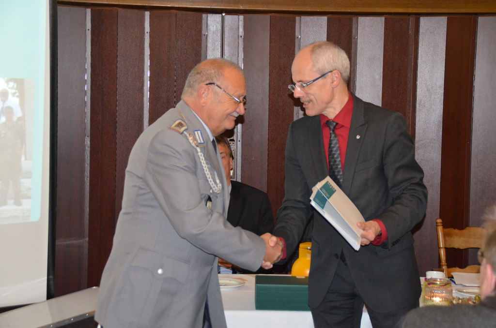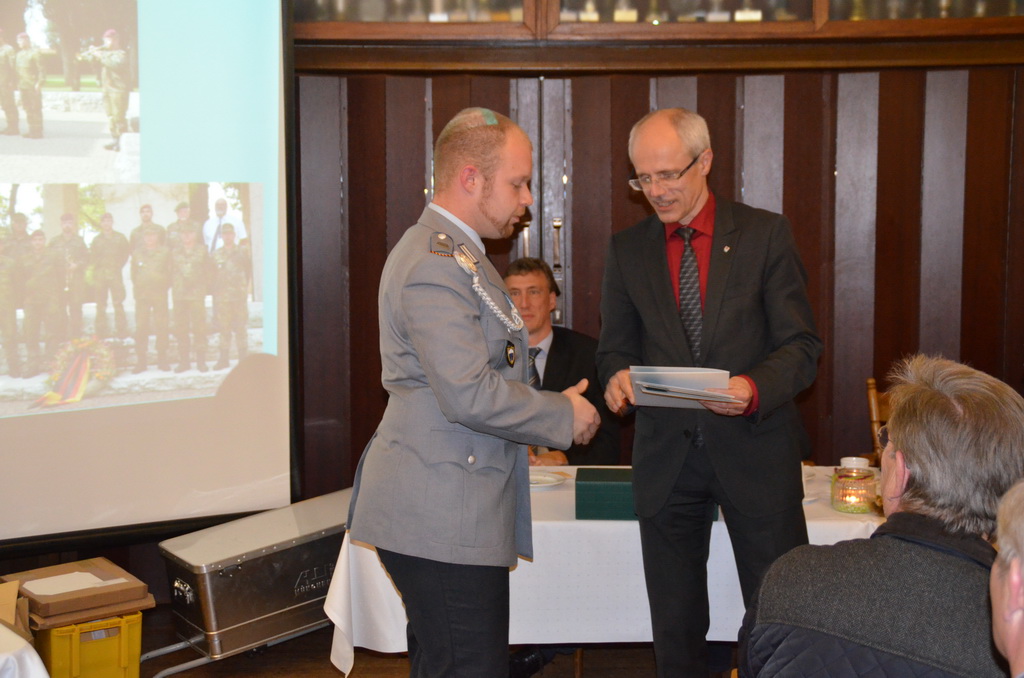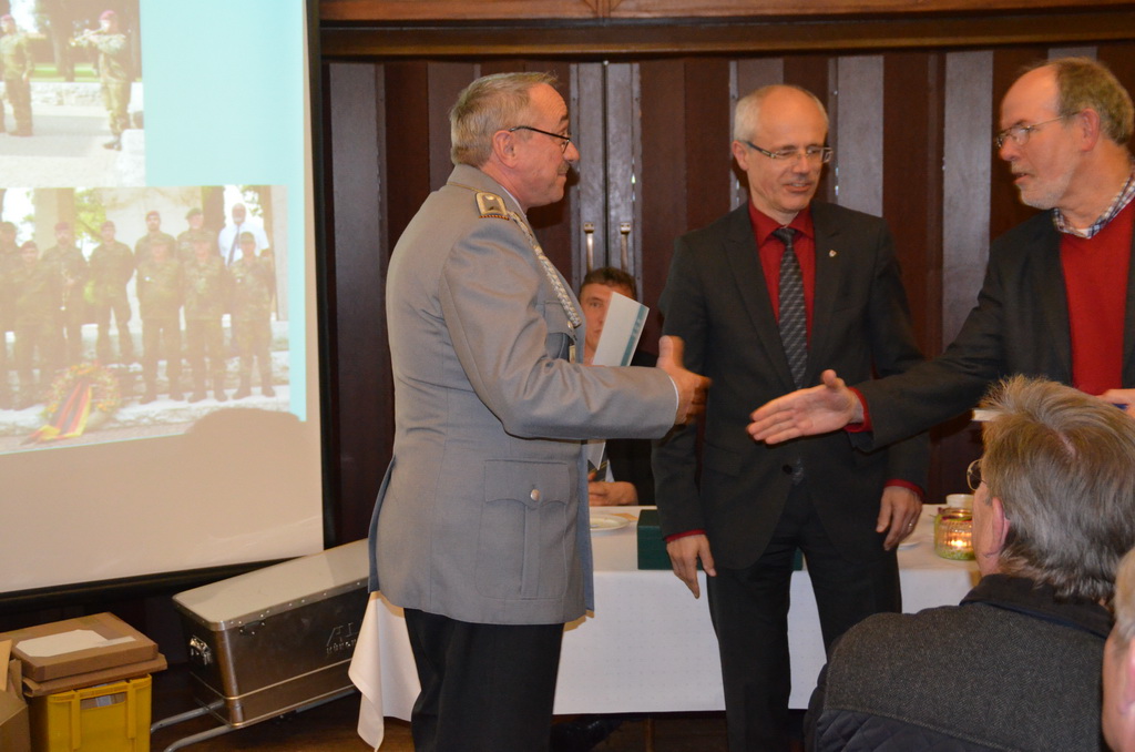 Ehrungsveranstaltung durch den Volksbund im Rahmen der Mitgliederversammlung am 23.10.2014 in Selsingen Der Landrat Hermann Luttmann übernahm die Ehrung der Kamaraden, die für den Volksbund in diesem Jahr in Italien waren