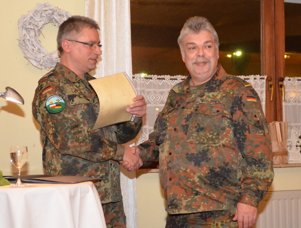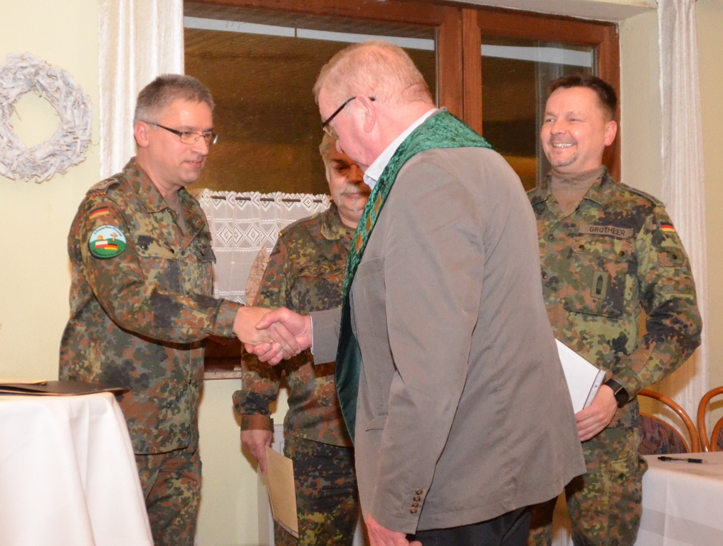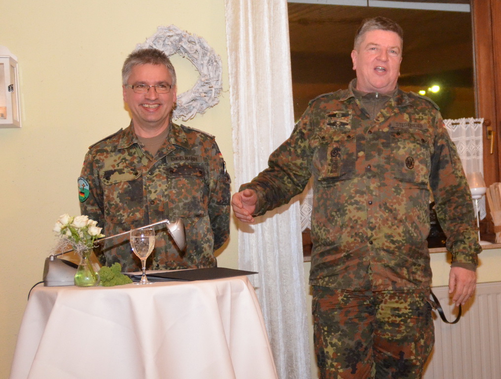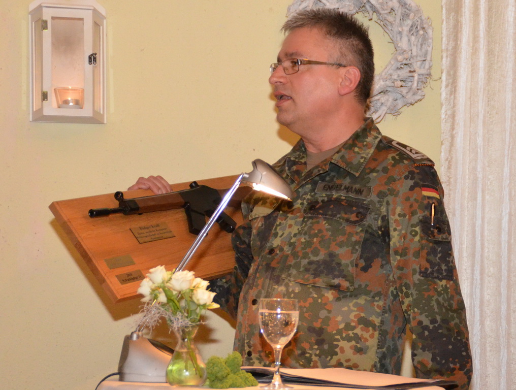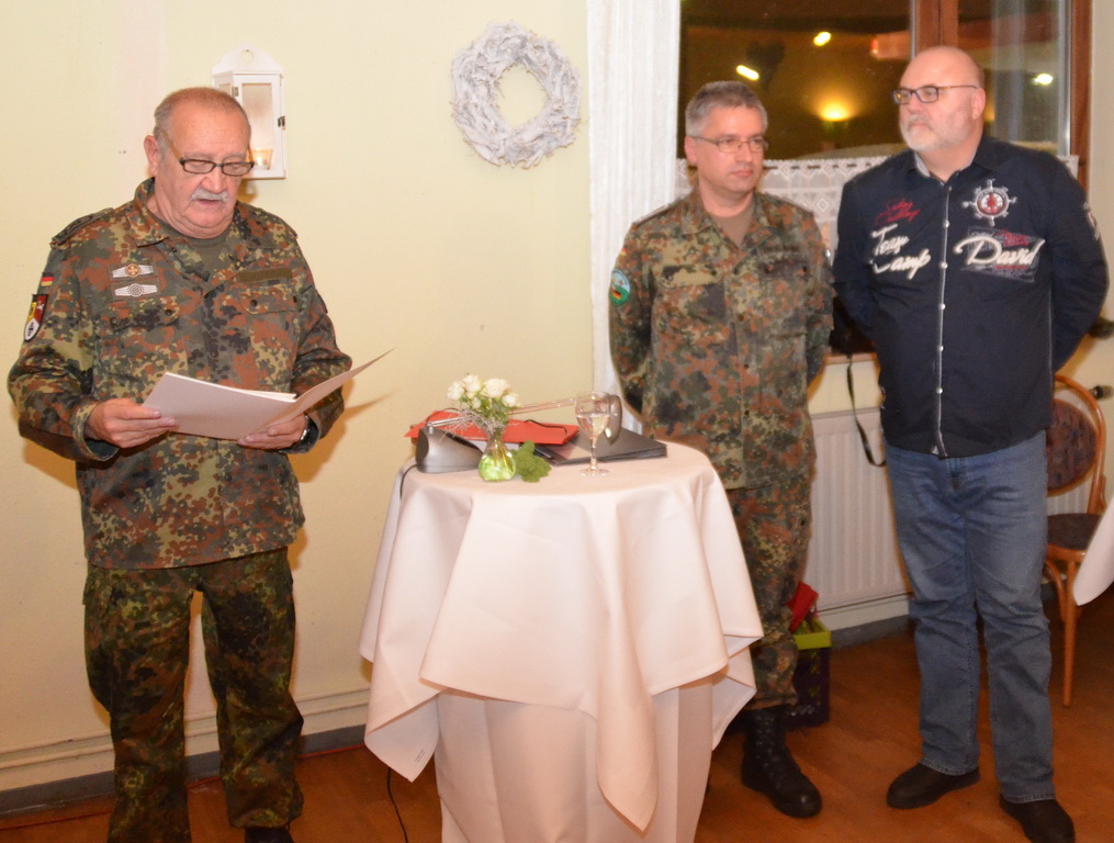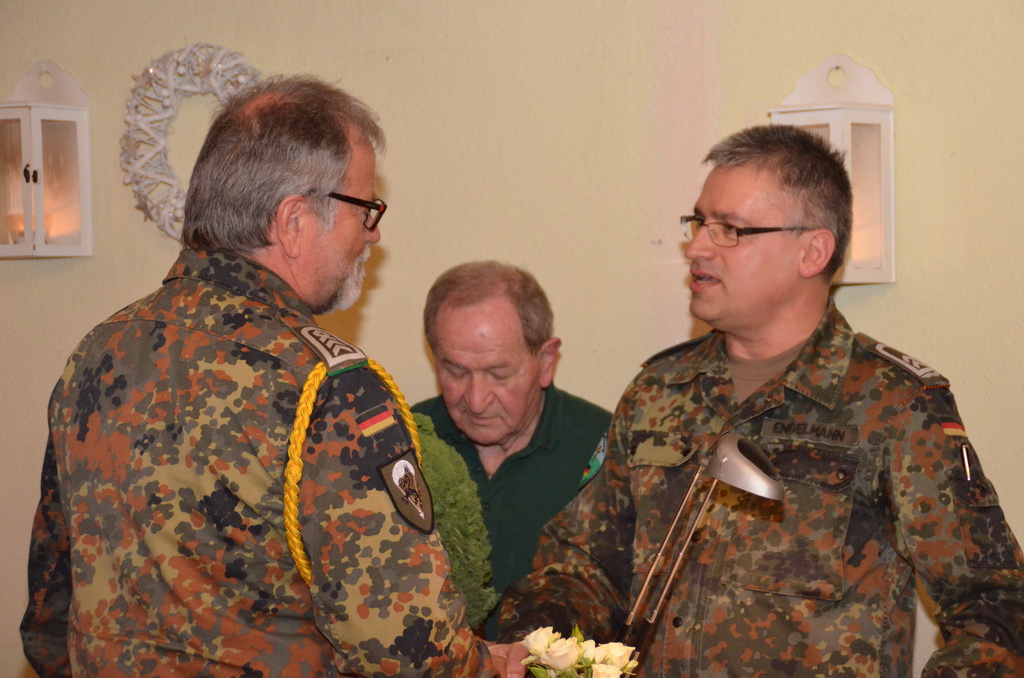 | Ebenso überbrachte der Stellv. Landesvorsitzende aus Niedersachsen, OTL d.R. Hans-Joachim Stegemeier Grüße vom Landesverband. |
