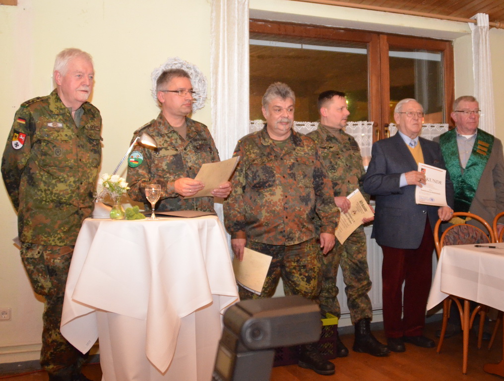 das Deutsche Sportabzeichen in Silber und Rudolf Scholles(2.v.r) wurde für 45 Jahre aktive Mitarbeit im Reservistenverband geehrt. |
