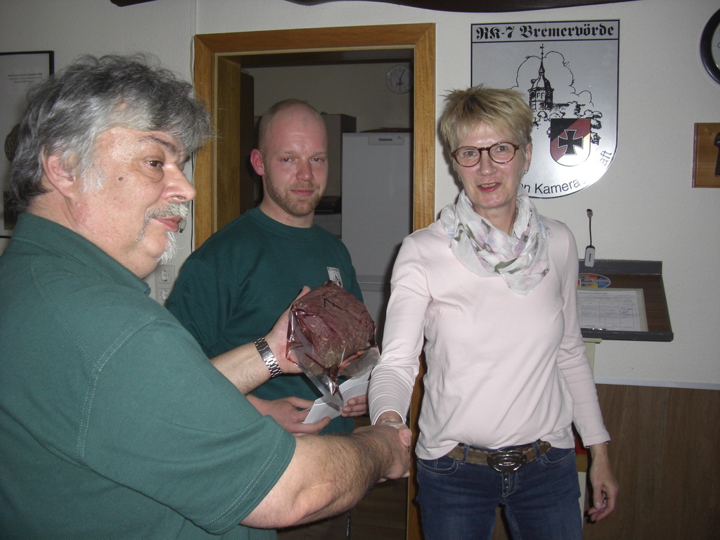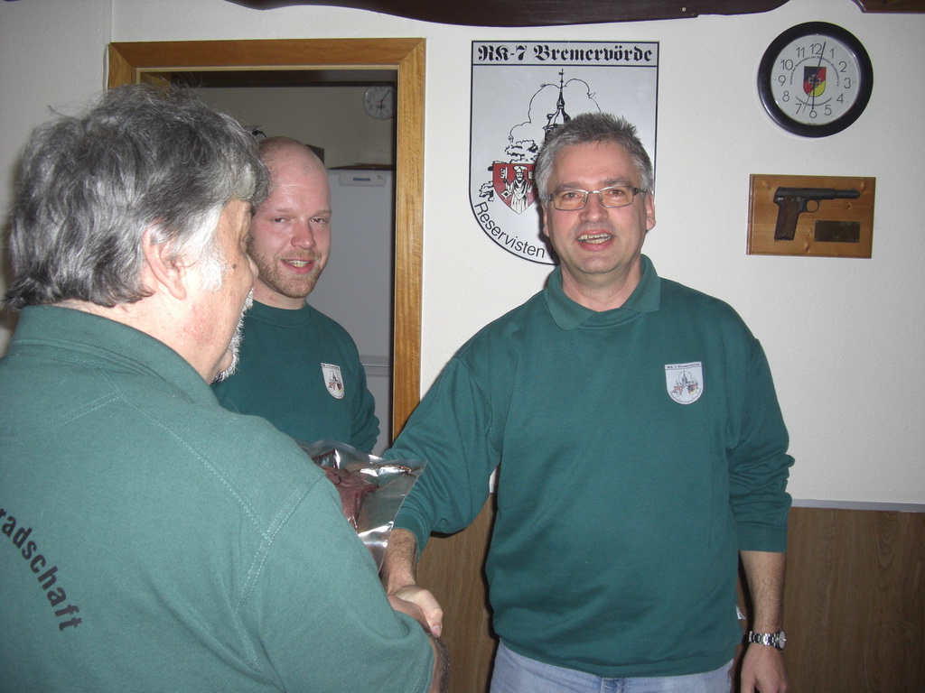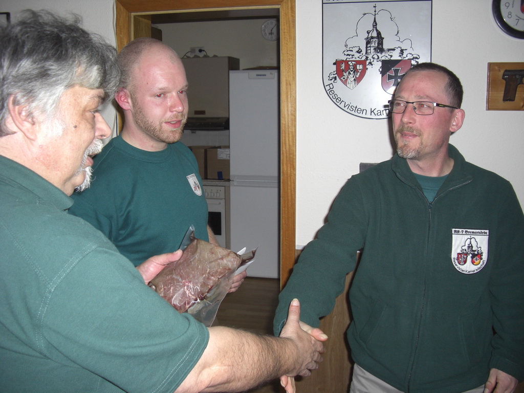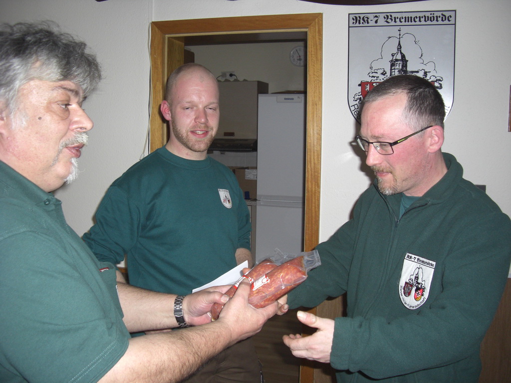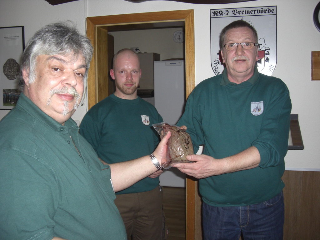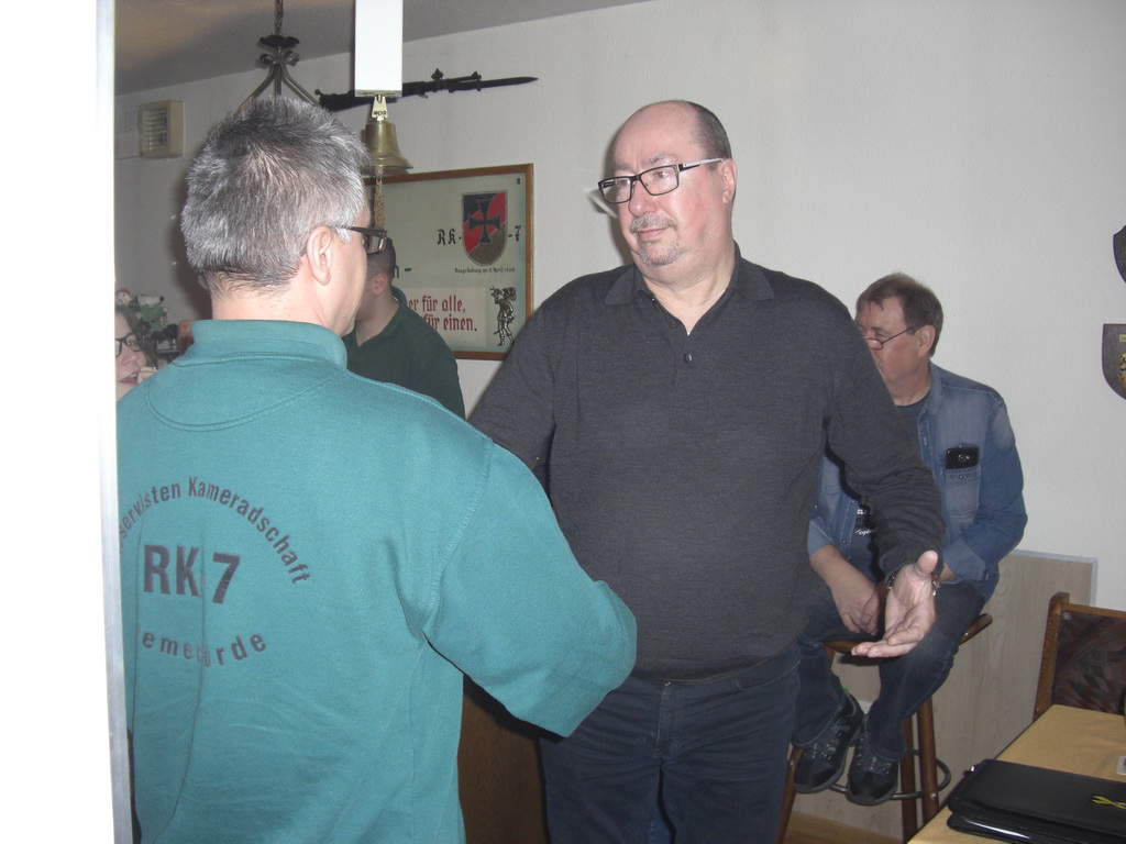 | Der Vorsitzende Kai-Uwe Engelmann bedankt sich bei Uwe Lehmann für fast 30 Jahre Vorstandsarbeit in der RK-7 Bremervörde. Er ist auf eigenen Wunsch aus dem Vorstand ausgeschieden. |