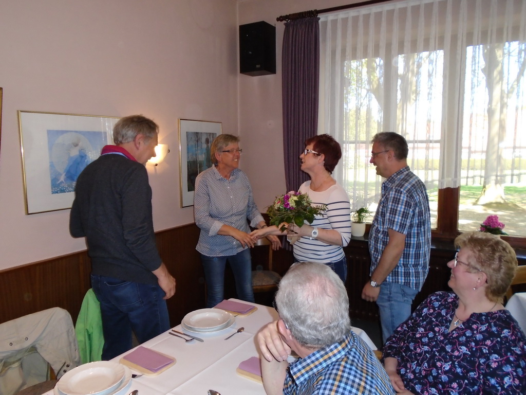 Unsere Gastwirtin Frau Irma Köster-Schnibbe hat Geburtstag, da gibt's selbstverständlich einen Blumenstrauß