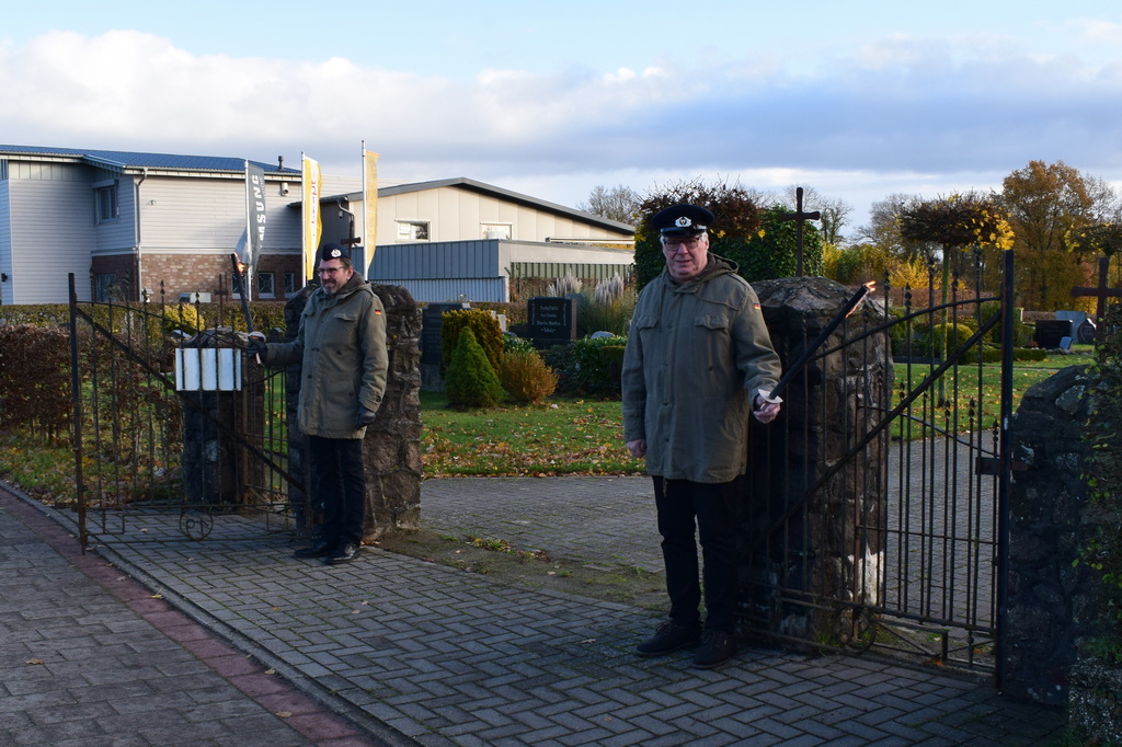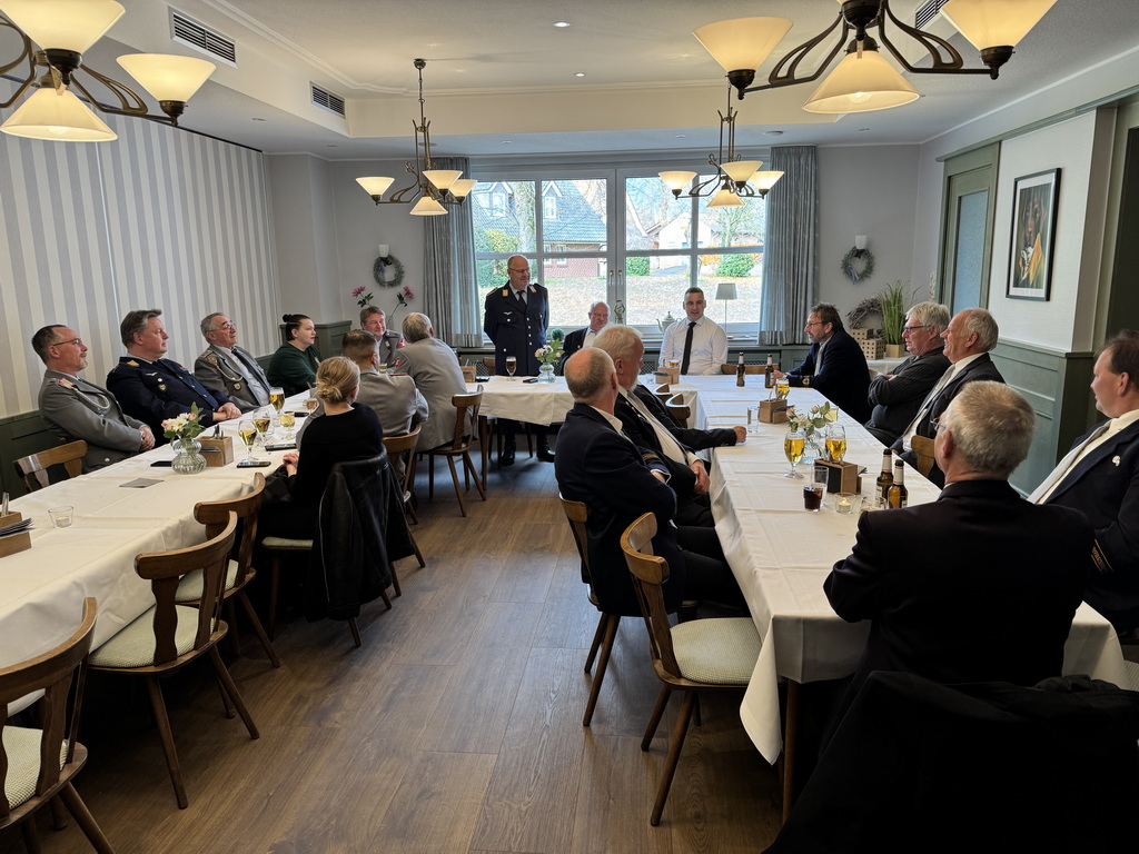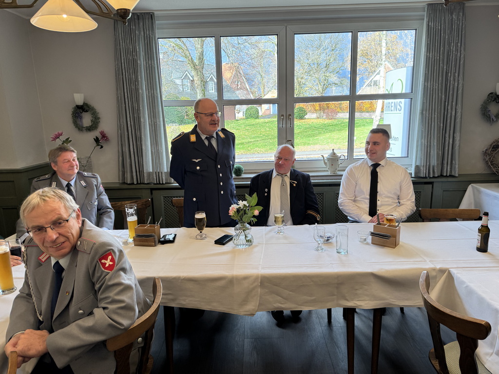 | Mit dem Ortsbürgermeister Jannis Düls, dem Vorsitzenden der Kyffhäuserkameradschaft Kuhstedt, Detlef Jacobs und dem Stellvertretenden Vorsitzenden der RK-7 Bremervörde, Jürgen Fischer klang der Volkstrauertag für alle Beteiligten mit einem gemeinsamen Essen aus. |