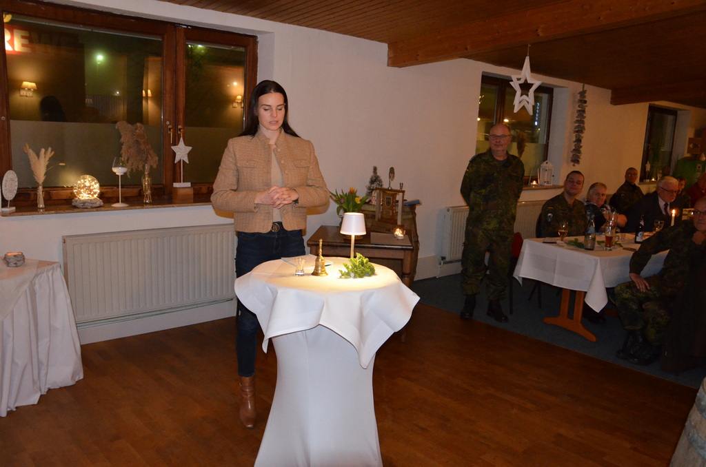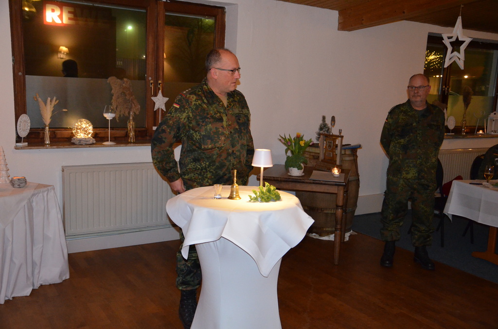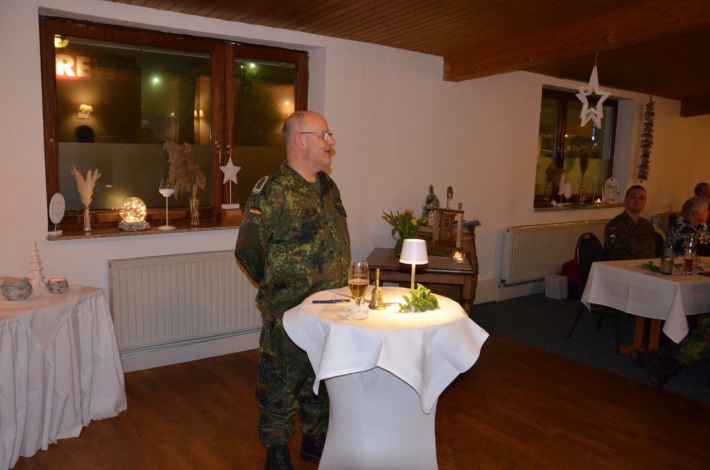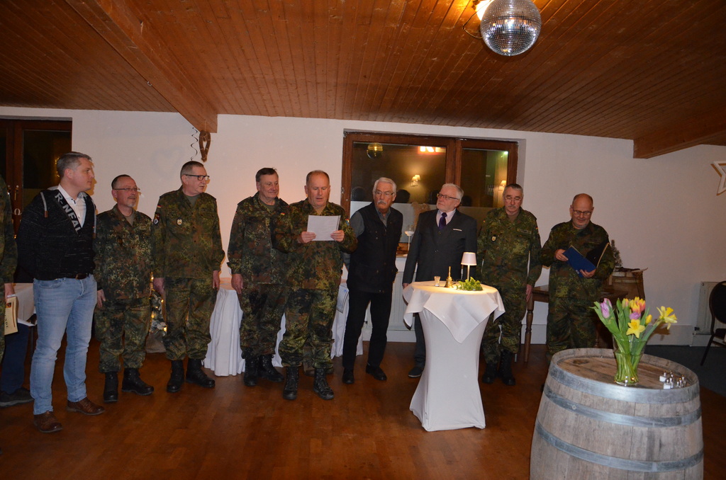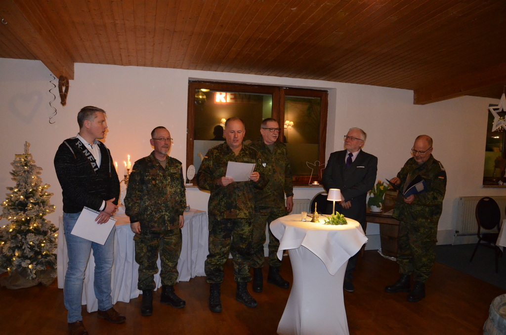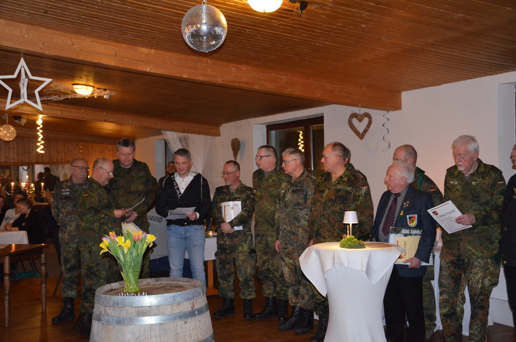 ... bevor er mit den Ehrungen von verdienten Mitgliedern begann. Hier konnte OGefr d.R. Malte Alexander Busch für 10-jährige aktive Mitarbeit im Verband geehrt werden... |