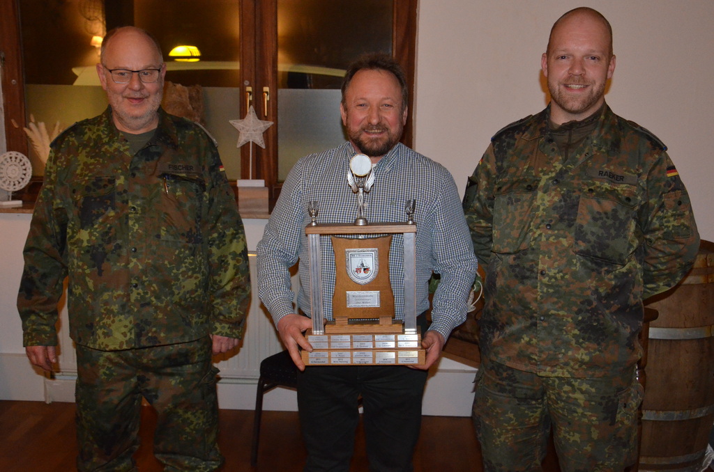 Waffen" Pokal vom Vergleichs- und Gästeschießen vom 25.10.2024 entgegennehmen, da er zur Siegerehrung bereits bei einem anderen Termin war. |