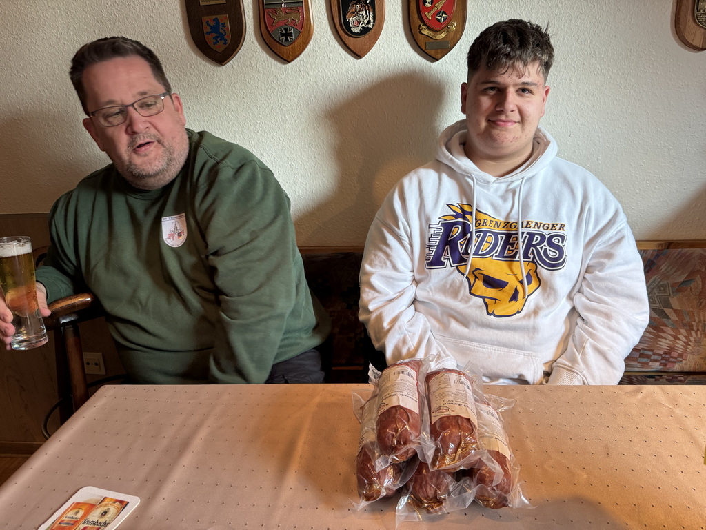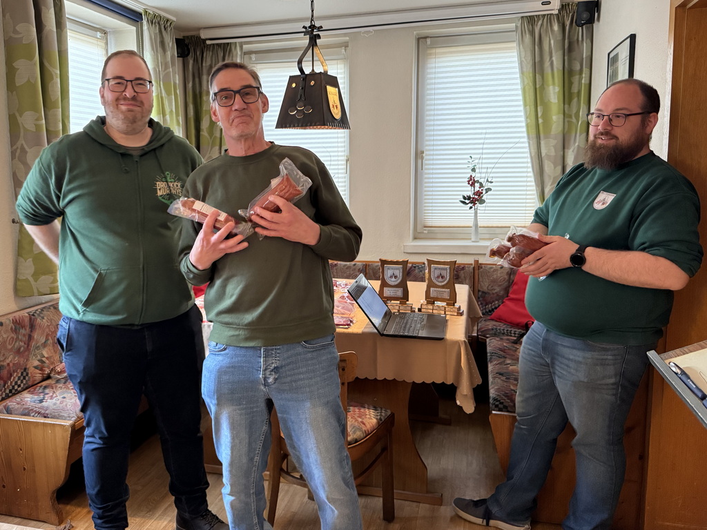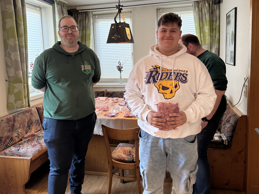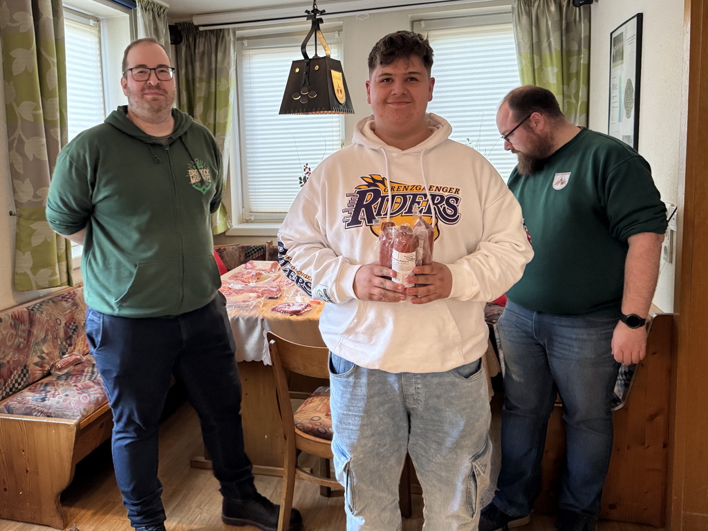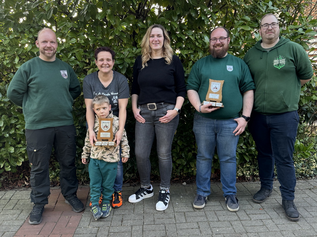| Alle Sieger mit dem Vorsitzenden, Stefan Raeker(lnks) und dem Schießwart Kevin Will(rechts) |