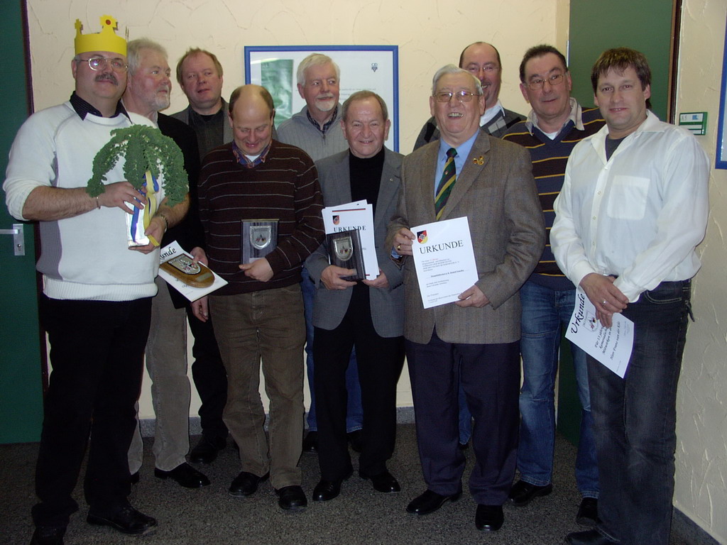 Der stellvertretende Vorsitzende der RK 7, Uwe Lehmann, zeichnete im Anschluss an das Grünkohkessen im CJD Mitglieder für ihre langjährige Zugehörigkeit zur RK 7 aus. Dazu gehören Frans van der Klis (15 Jahre) sowie Jürgen Fischer, Bernd Schnäpp, Werner Tietgen und Johannes Witz (25 Jahre). Für seine 35-jährige Mitgliedschaft im Verband der Reservisten der deutschen Bundeswehr wurde Rudolf Scholles geehrt. Scholles war lange Jahre Vorsitzender der früheren RK-8 Bremervörde-Engeo. Enno Rugen und Reiner Bösch wurden für 40-jährige Mitgliedschaft ausgezeichnet. „Alle genannten Kameraden haben die RK über einen langen Zeitraum aktiv unterstützt. Enno Rugen war viele Jahre im Vorstand und davon 13 Jahre Vorsitzender der RK 7. Reiner Bösch lenkte viele Jahre die finanziellen Geschicke der RK 7 und ist heute einer der drei Stellvertreter des Vorsitzenden." Für ihre 20-jährige Mitgliedschaft in der RK-7 wurden Johann Buck und Kurt Senszewski geehrt. Zum Kohlkönig wurde in diesem Jahr Frank Neuber erkoren, der als Gast aus Nauen angereist war. In seinem Jahresrückblick wies der RK-7-Vorsitzende Klaus Schmidt auf die zahlreichen Aktivitäten der Reservistenvereinigung hin. Aber auch Biwaks und Schießübungen mit Bundeswehrhandwaffen gehören zum Programm. Als .„besonderes Ereignis" bezeichnete Schmidt den Einsatz für die deutsche Kriegsgräberfürsorge in Havelberg im vergangenen Jahr. Alle Kameraden, die daran teilgenommen hätten, seien bis an ihre Leistungsgrenze gegangen, um das Projekt zeitgerecht fertig zustellen. In seinen Ausblick auf das Jahr 2008 ging Schmidt auf das Jubiläum ein und warb in diesem Zusammenhang besonders für Veranstaltungen, die in Zusammenarbeit mit der Gesellschaft für Wehrund Sicherheitspolitik (GfW), Sektion Bremervörde-Zeven, organisiert werden.
