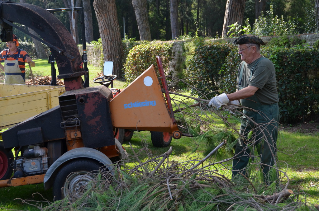 ![]() Die kleinen Aste werden als Mulch zerkleinert und in den Olivenhain gefahren |